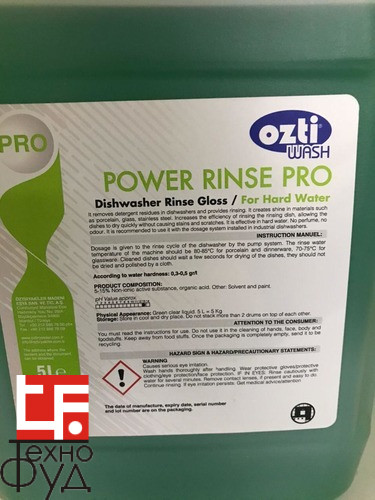 Ополаскивающее средство POWER RINSE PRO рекомендовано для использования на професcиональной кухне. Средство подходит для посудомоечных машин с дозирующим устройством.