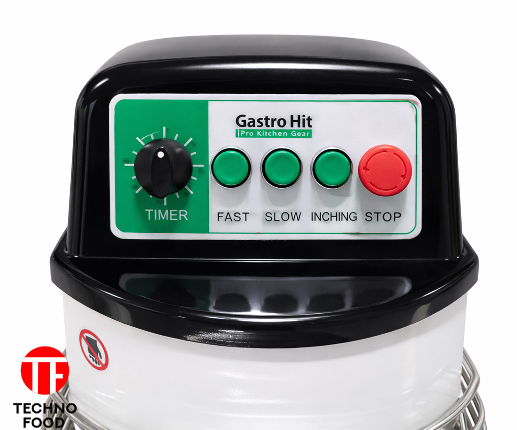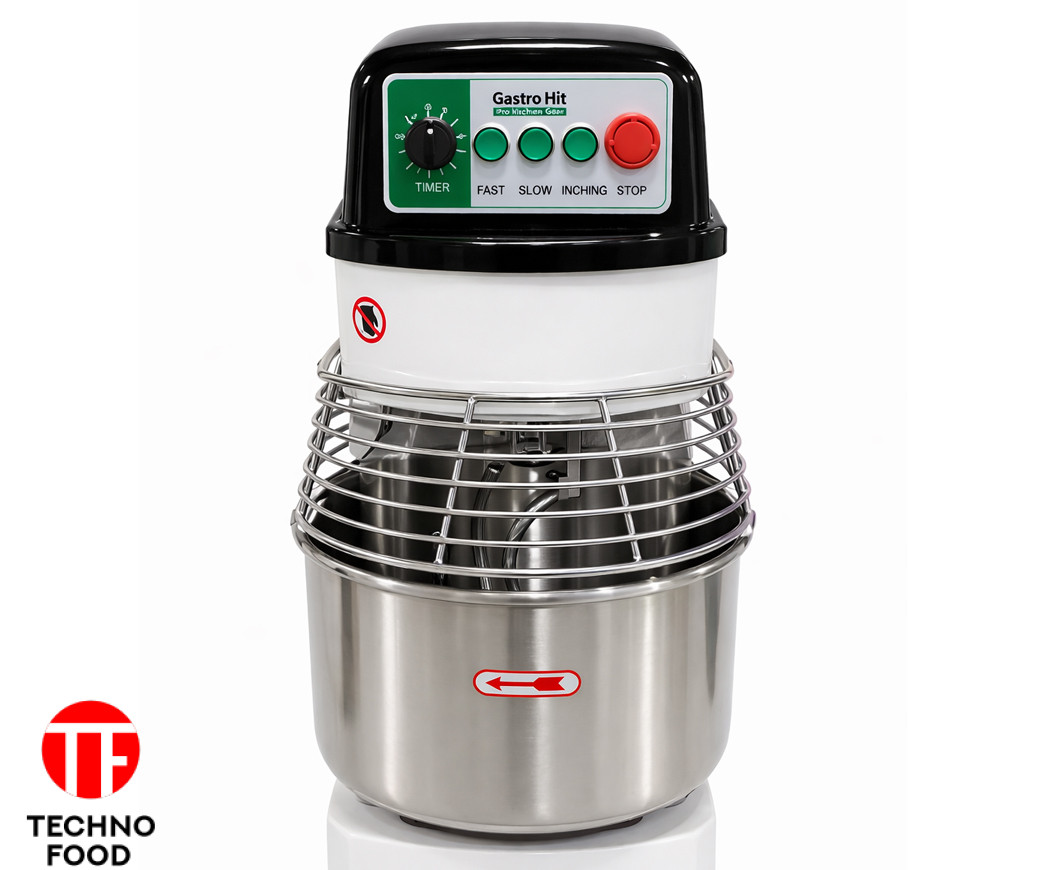 Модель с чашей на 20 литров и двумя скоростями обеспечивает оптимальный баланс между компактностью и производительностью. Идеально подходит для замеса дрожжевого, пиццерийного и мягкого теста в условиях небольшого производства или профессиональной кухни.