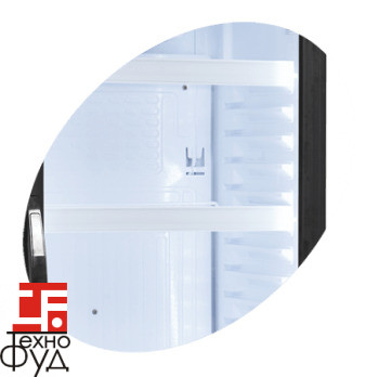 Обшивка внутрішнього обсягу зроблена з пластику. Корпус холодильної шафи зроблений з фарбованого металу.