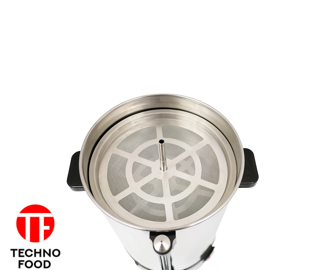 Корпус кавового заварника виконаний з нержавіючої сталі, всередині кругла система нагріву, що забезпечує стабільну температуру та збереження смаку напою. Заварник розрахований на роботу з фільтром-пакетом й ідеально підходить для приготування класичного американо або кави для банкетів і шведських столів.