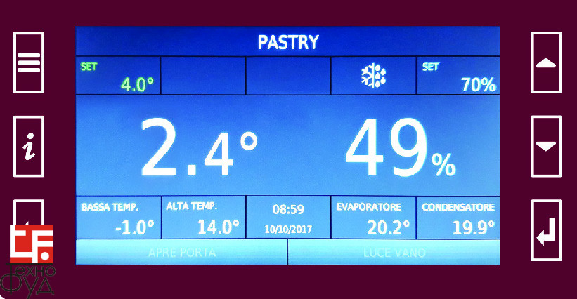 Модель холодильного апарату CGCC090T2HU обладнана системою контролю вологості в камері. Рівень підтримуваної вологості високий 65-95%. Холодильник має велику місткість - 20 рівнів (решітки або гастроємності 600х800 мм).